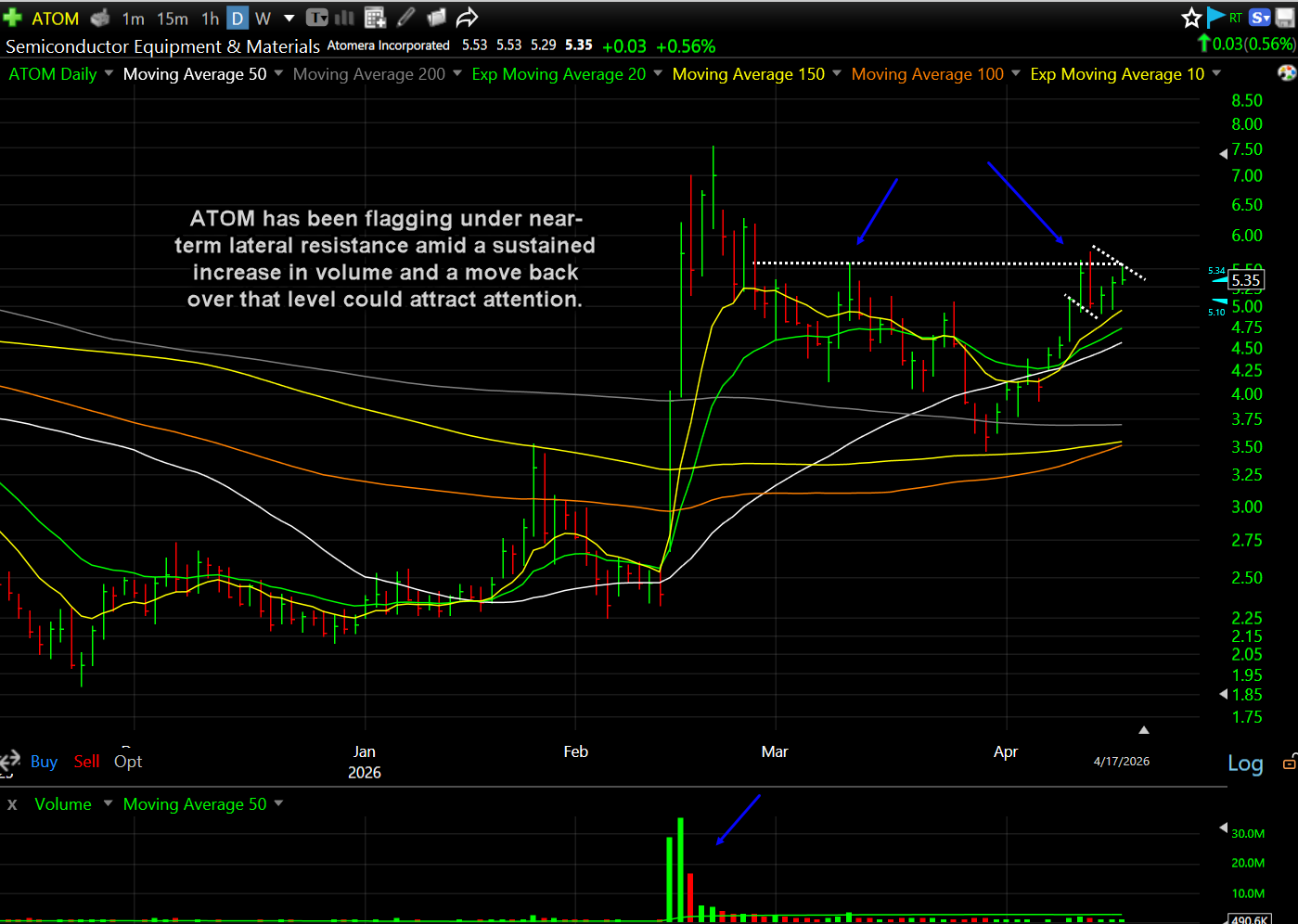 This post is for educational purposes only! This is not advice or a recommendation. We do not give investment advice. Do not act on this post. Do not buy, sell, or trade the stocks mentioned herein. We WILL actively trade this stock differently than discussed herein. We will sell into strength and buy or sell at any time for any reason. We will actively trade into any unusual activity. At the time of this post, principals, employees, and affiliates of Shark Investing, Inc. and/or principals, clients, employees, and affiliates of Hammerhead Financial Strategies, LLC, directly or indirectly, controlled investment and/or trading accounts containing no positions in ATOM at the time this was published. To accommodate the objectives of these investing and/or trading accounts, the trading in these shares will be contrary to and/or inconsistent with the information contained in this posting.